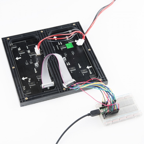 Once you've got the hardware, your first stop is our RGB Panel Hookup Guide - specifically the part about powering the panel. We'll be powering our project the exact same way, so go ahead and take a little detor over there. Note: Just do the power supply part, NOT the hardware hookup - our configuration is different.