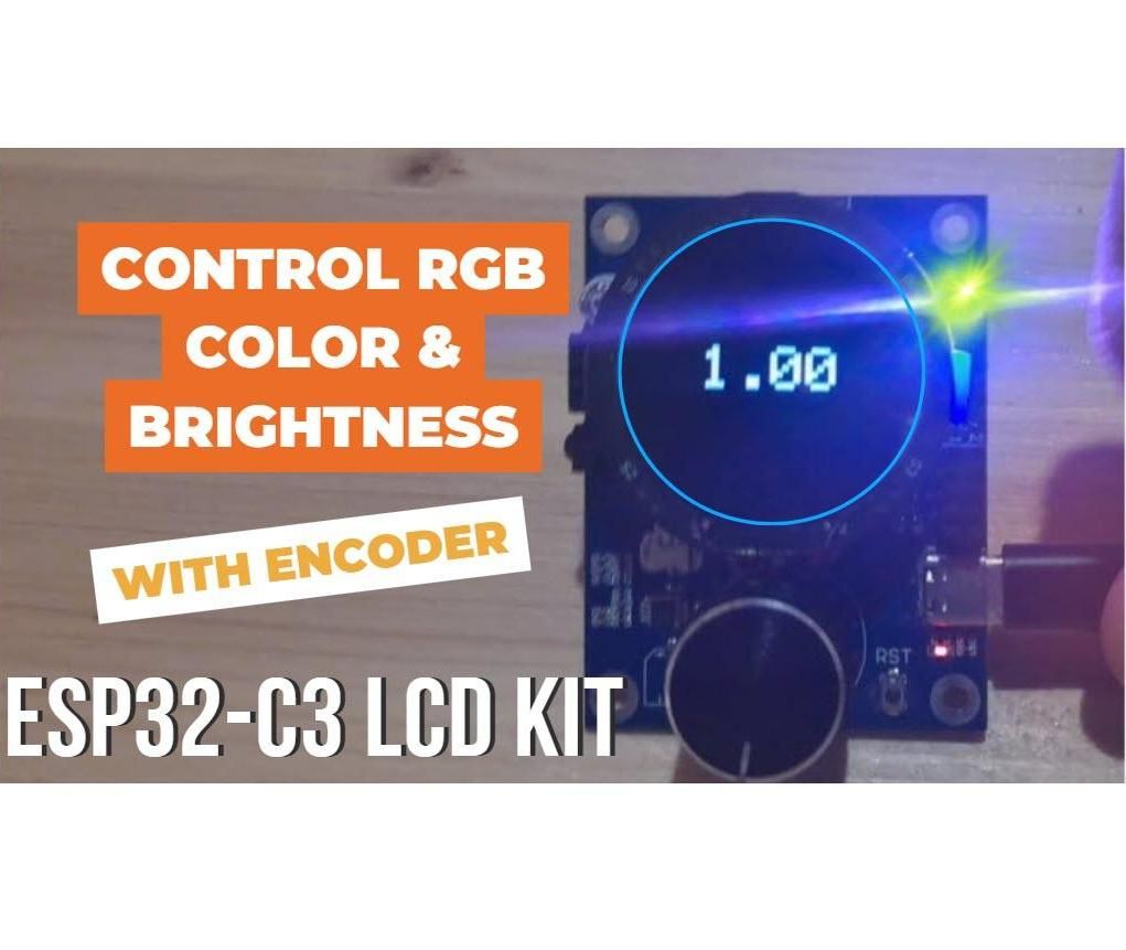 Learn to adjust RGB LED brightness via rotary encoder and generate random colors on the ESP32-C3 LCD Kit using Visuino. Step-by-step guide for beginners.