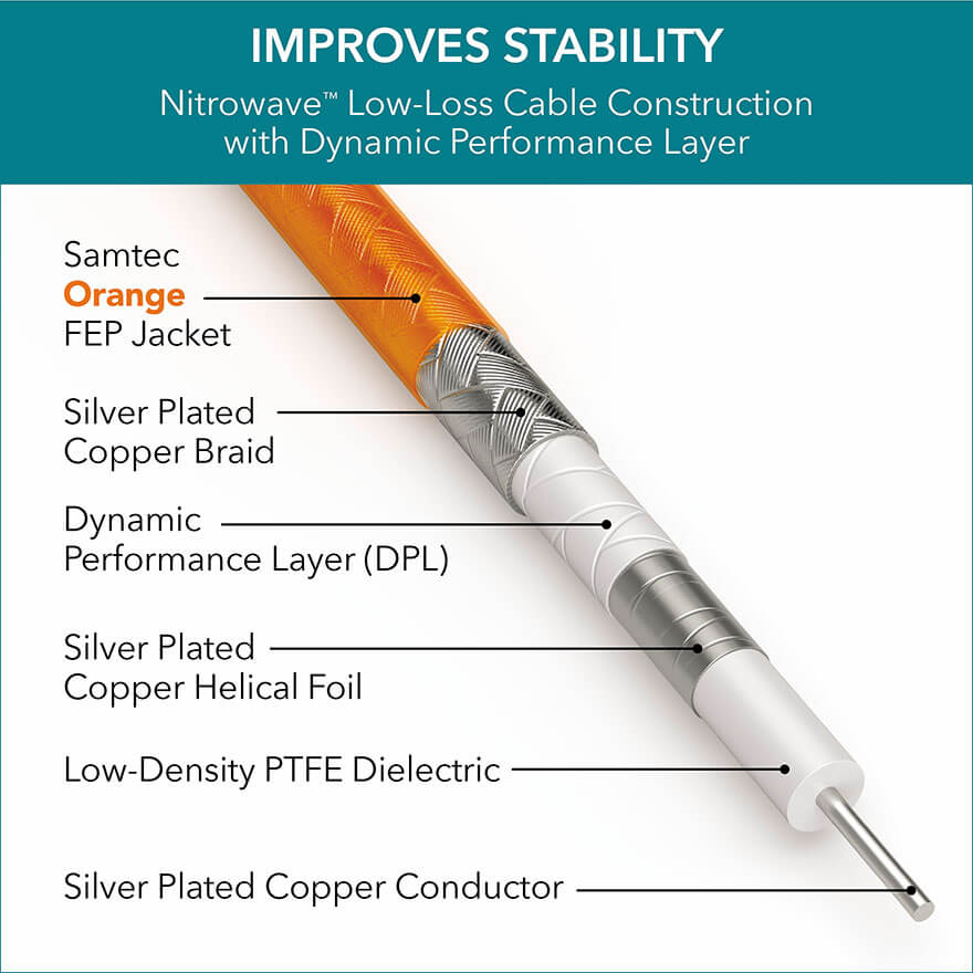 • Optimized coaxial structure using Nitrowave™ cable technology
