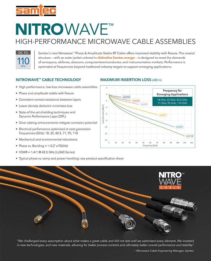Samtec Nitrowave™ High-Performance RF Microwave Cable Assemblies