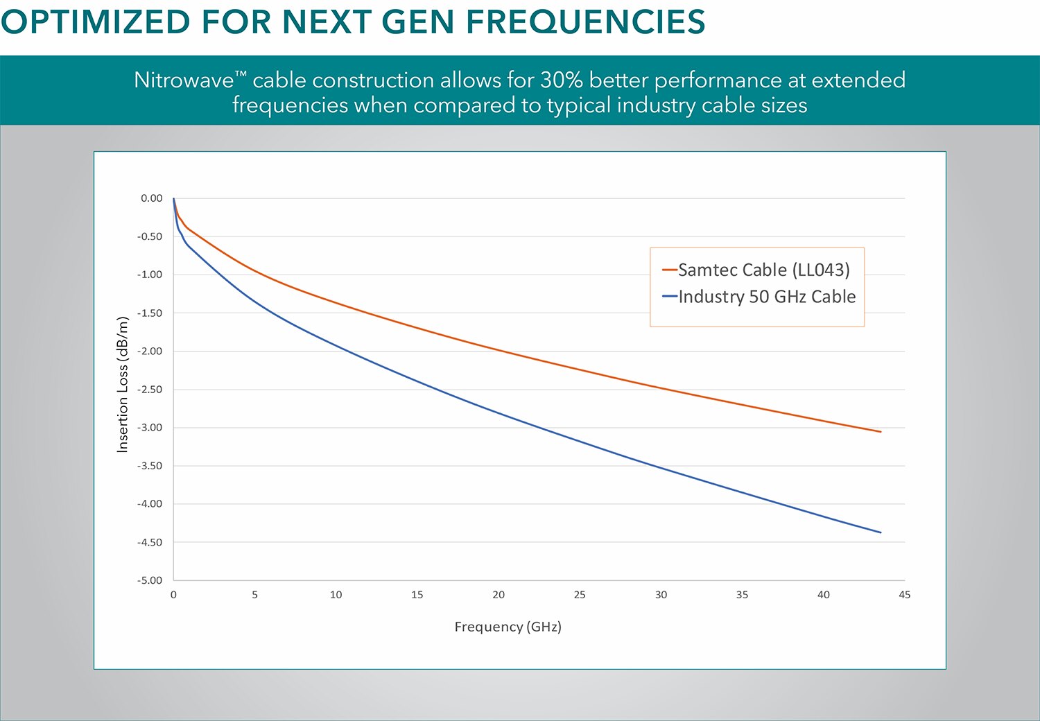 • Electrical performance optimized at next gen frequencies (GHz): 18, 32, 43.5, 71, 95, 110