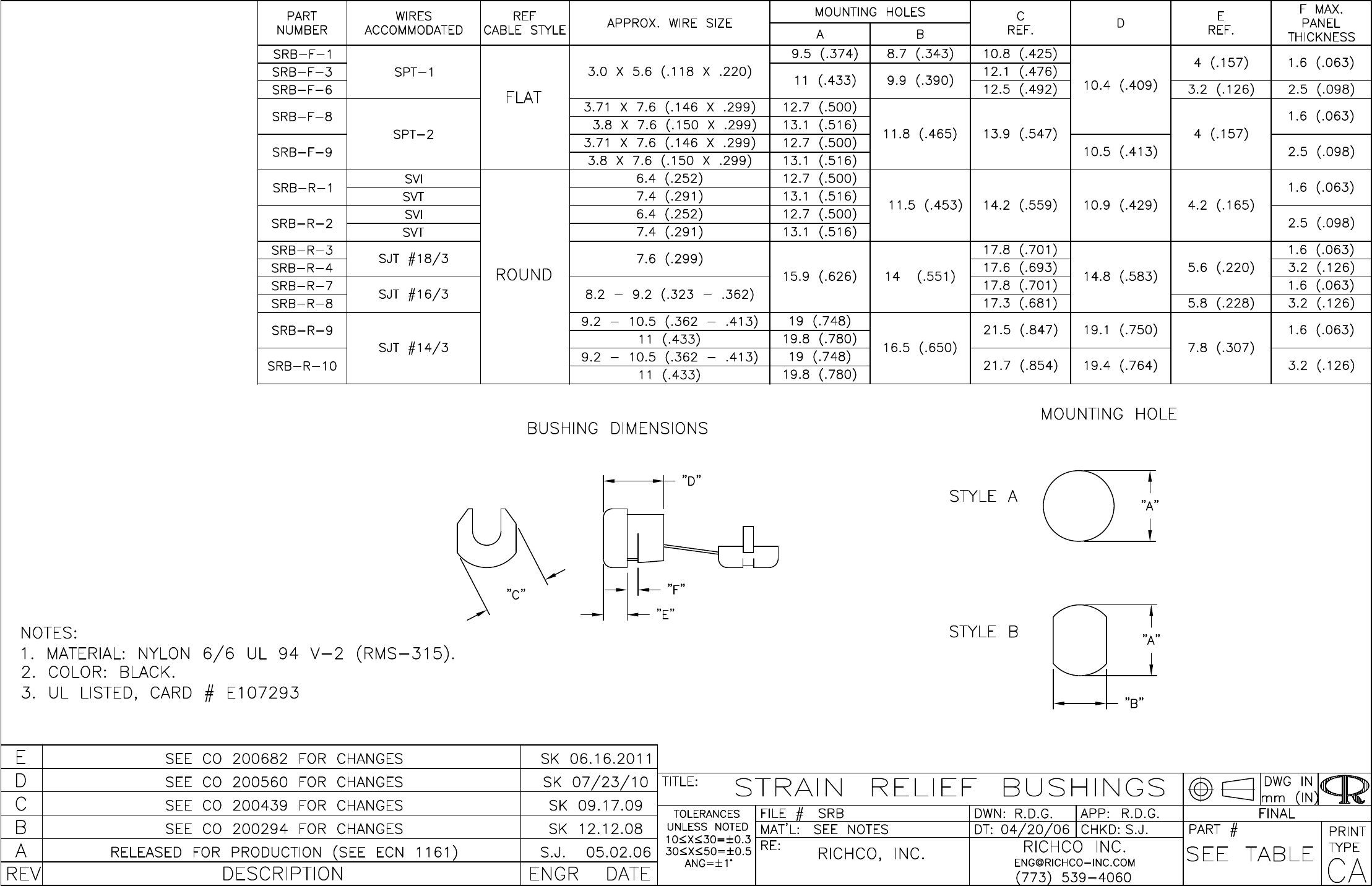 D SEE C0 200560 FOR CHANGES SK 07/23/40 T‘TLE: STRAIN REL‘EF BUSHINGS @E DWG(INW