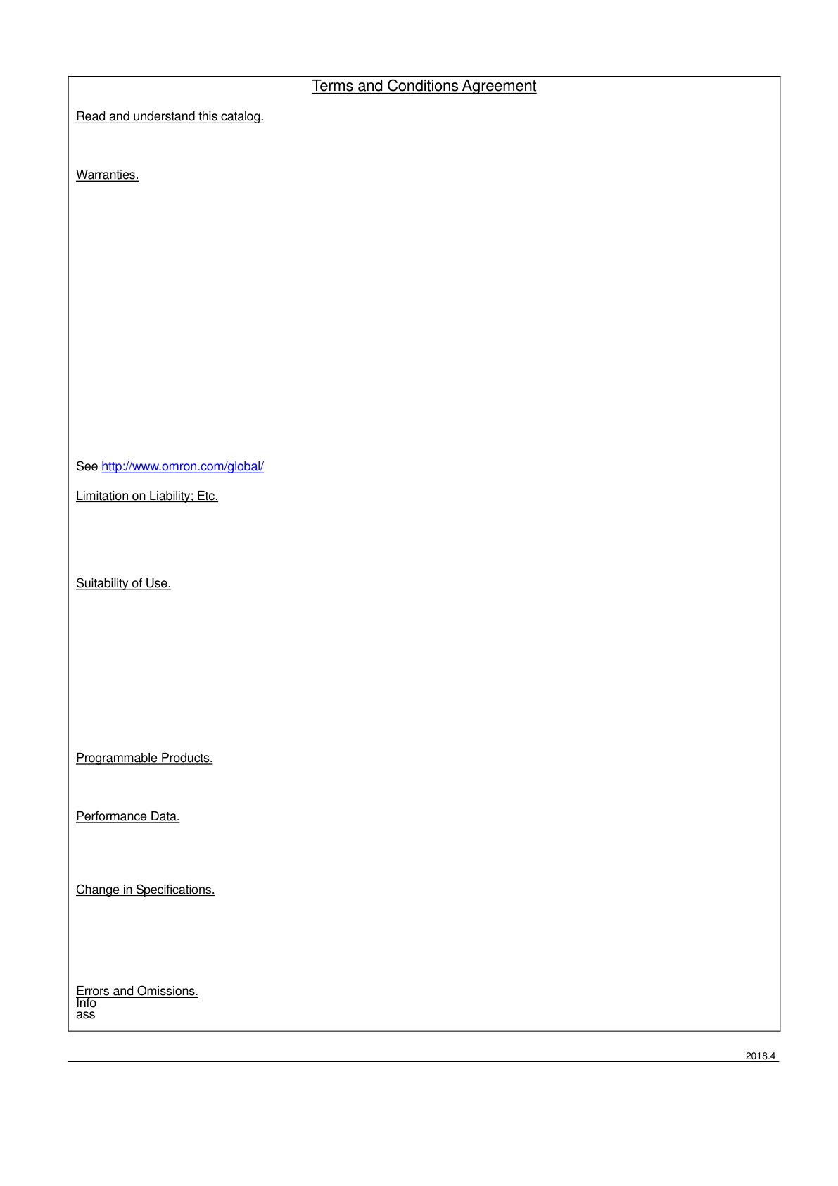 it to actual application requirements. Actual performance is subject to the Omron’s Warranty and Limitations of Liability.
