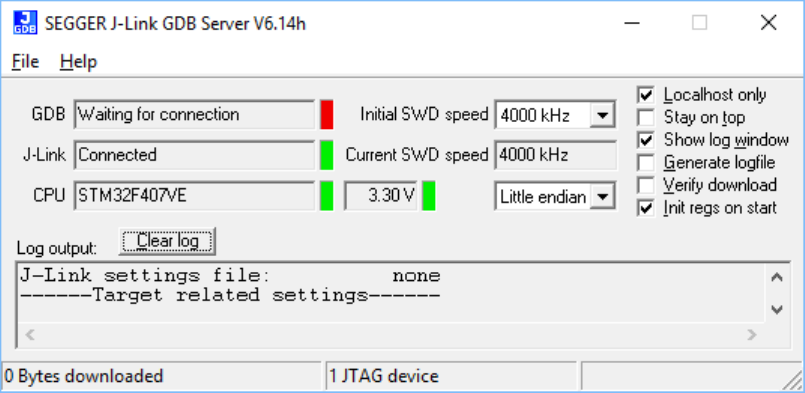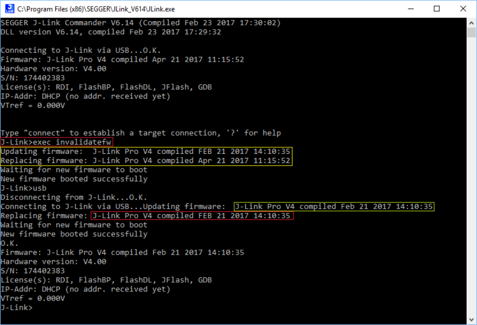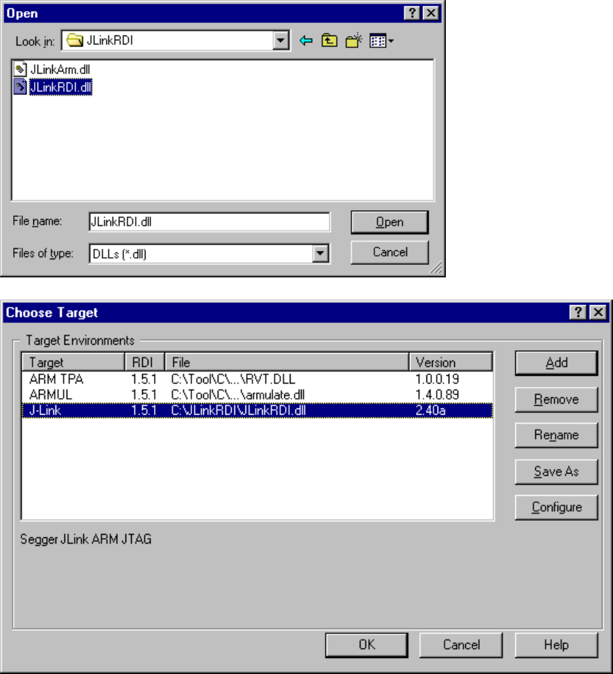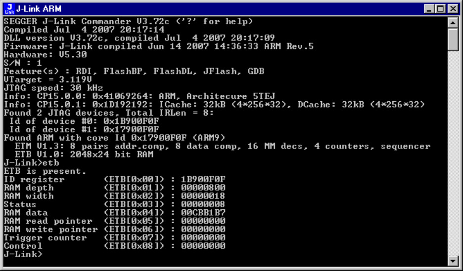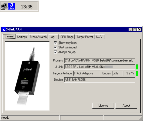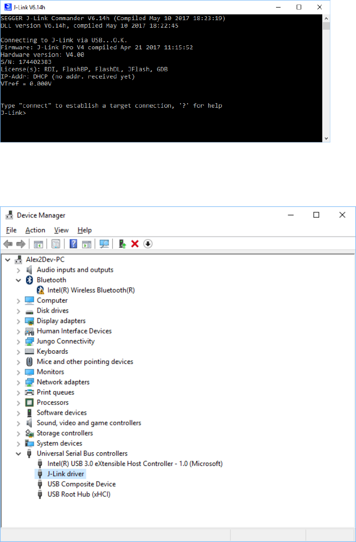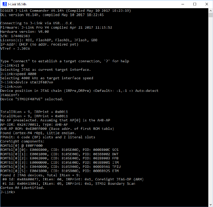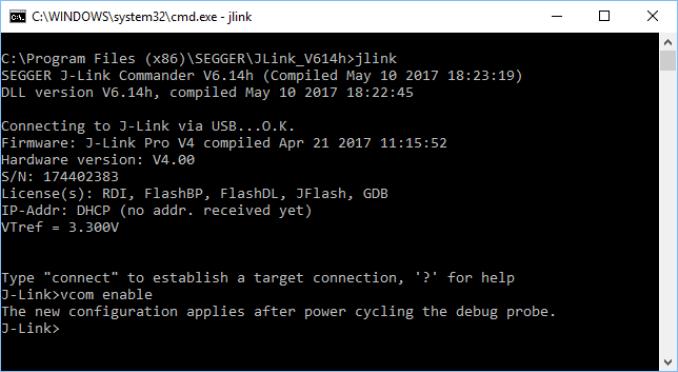 • If JLink.exe displays the J-Link / J-Trace serial number and the target processor’s core
