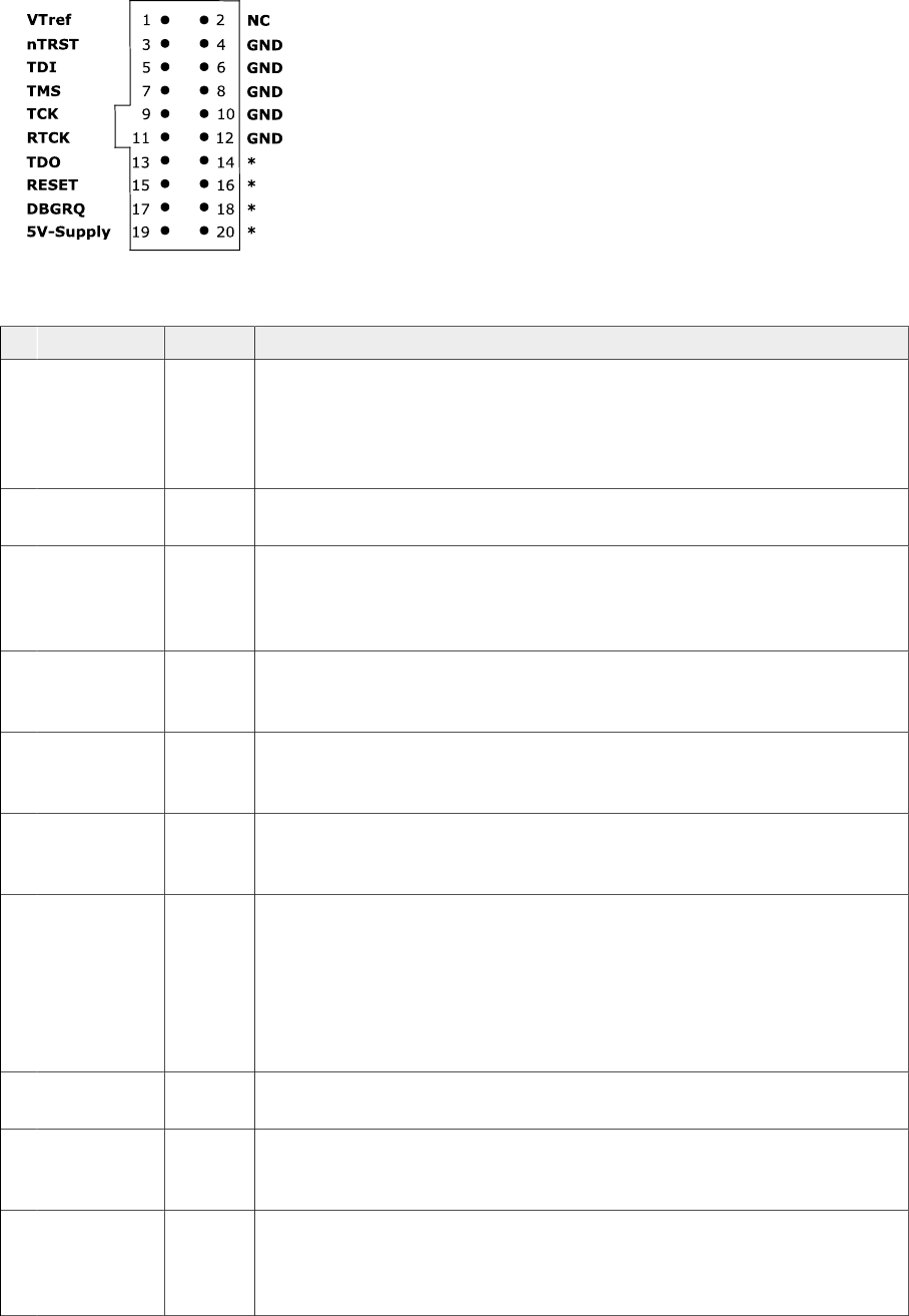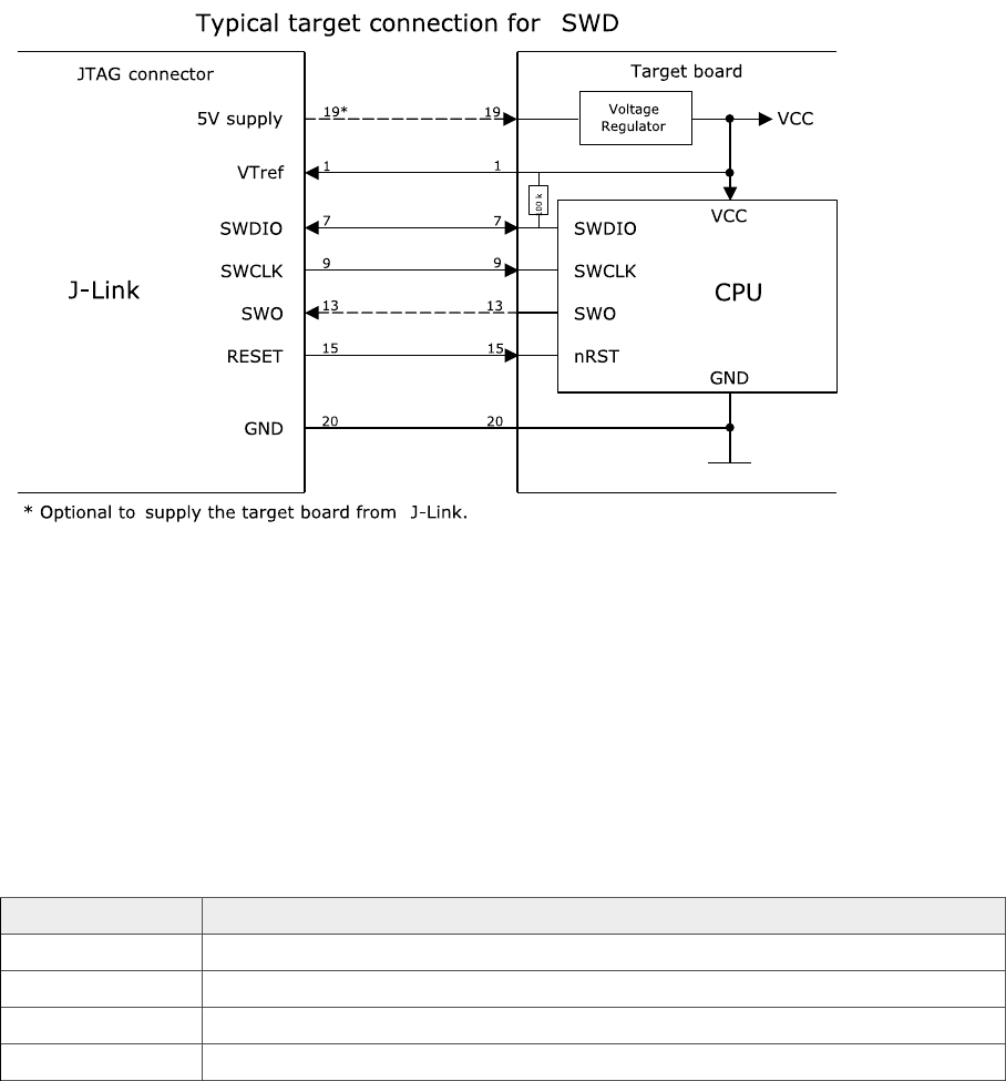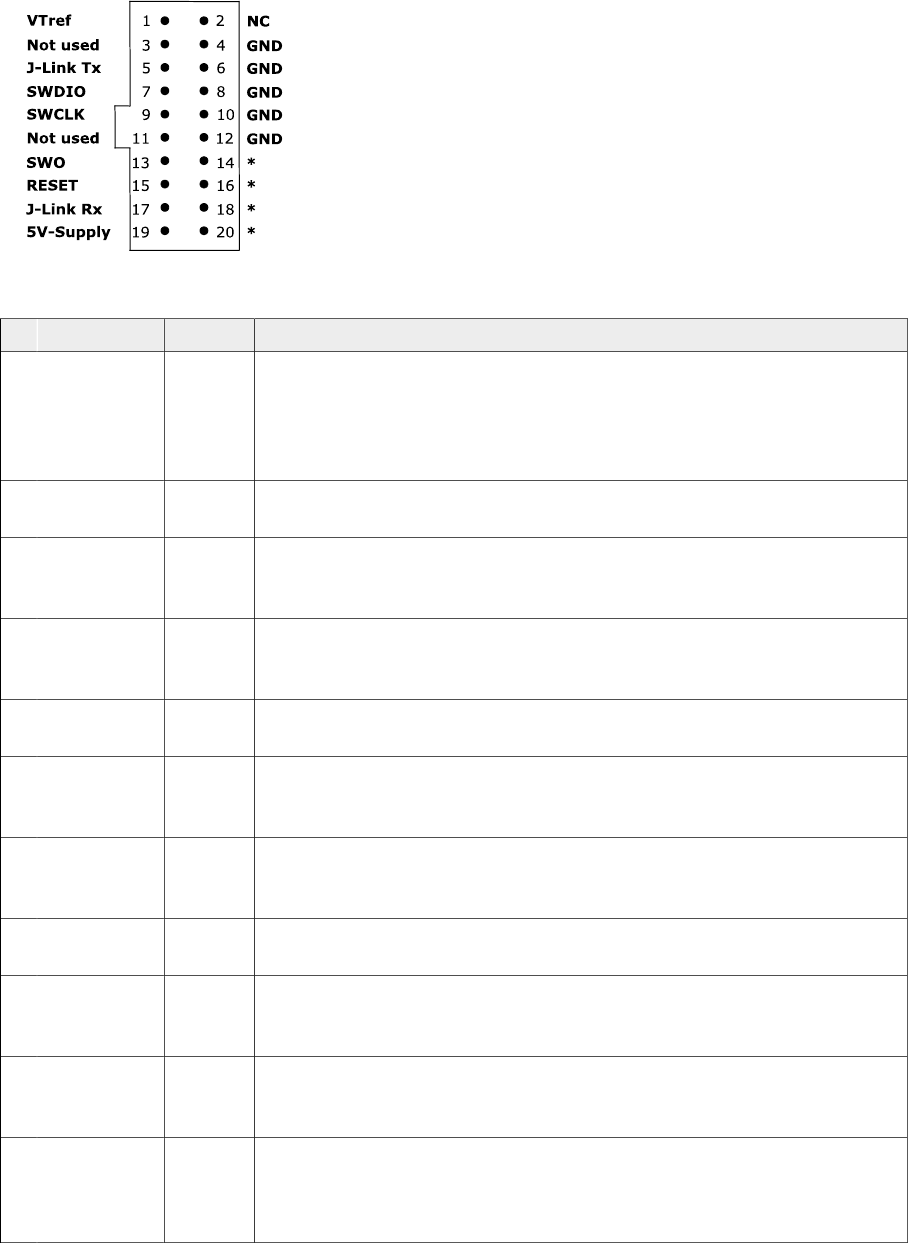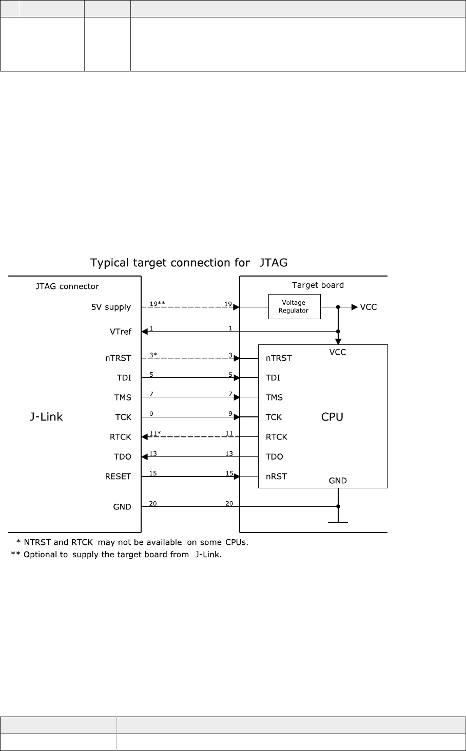 * Section “20-pin J-Link connector”: Corrected information for pins 14, 16,