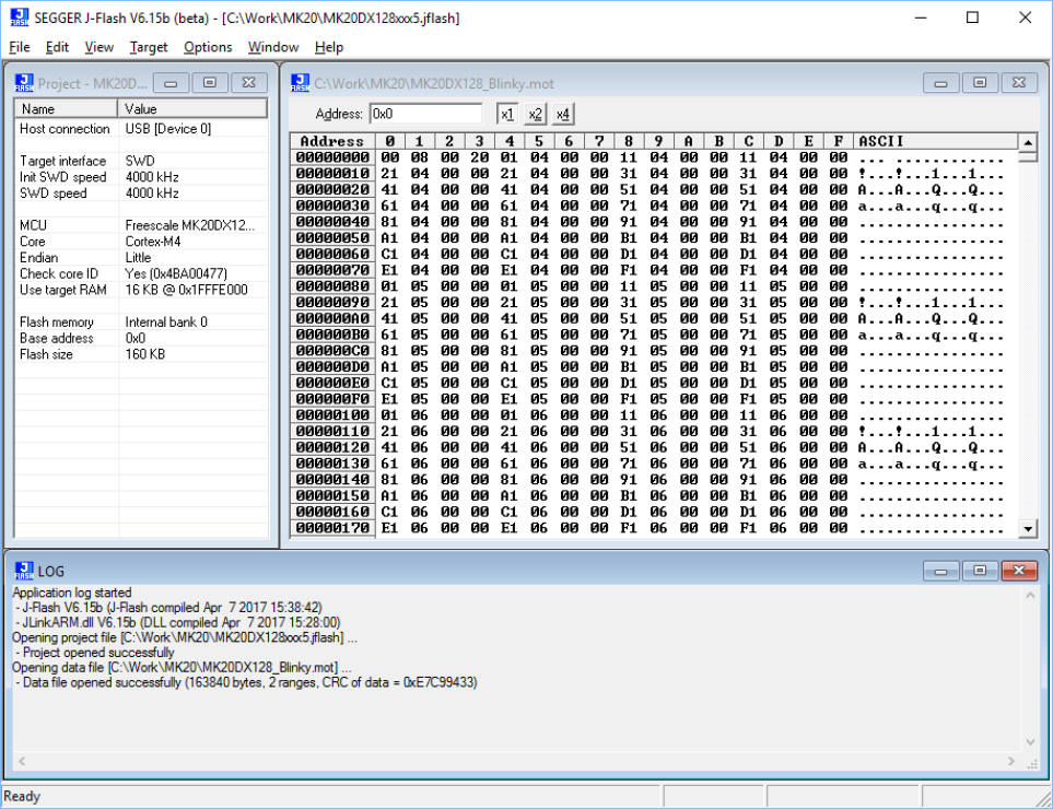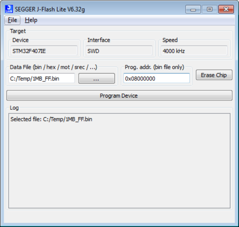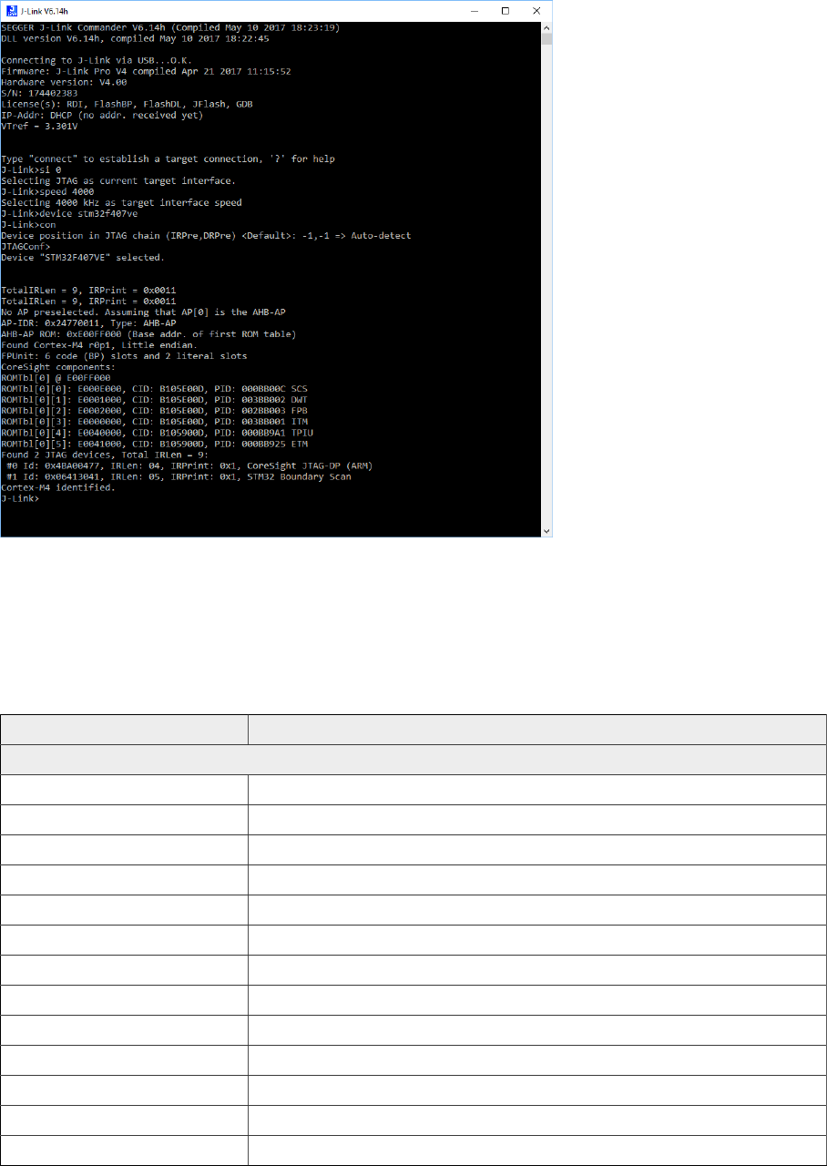 JLink.exe has been used for measurement performance. The hardware consisted of:
