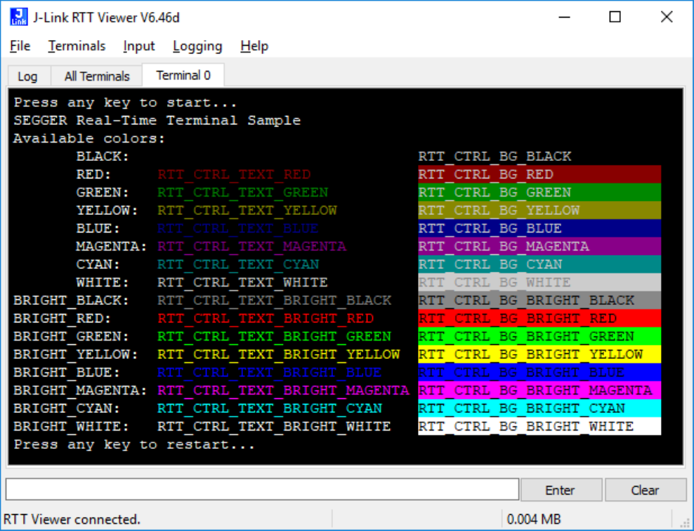 * Section “J-Link RTT Viewer”: Menu entry ’Channel infos…’.