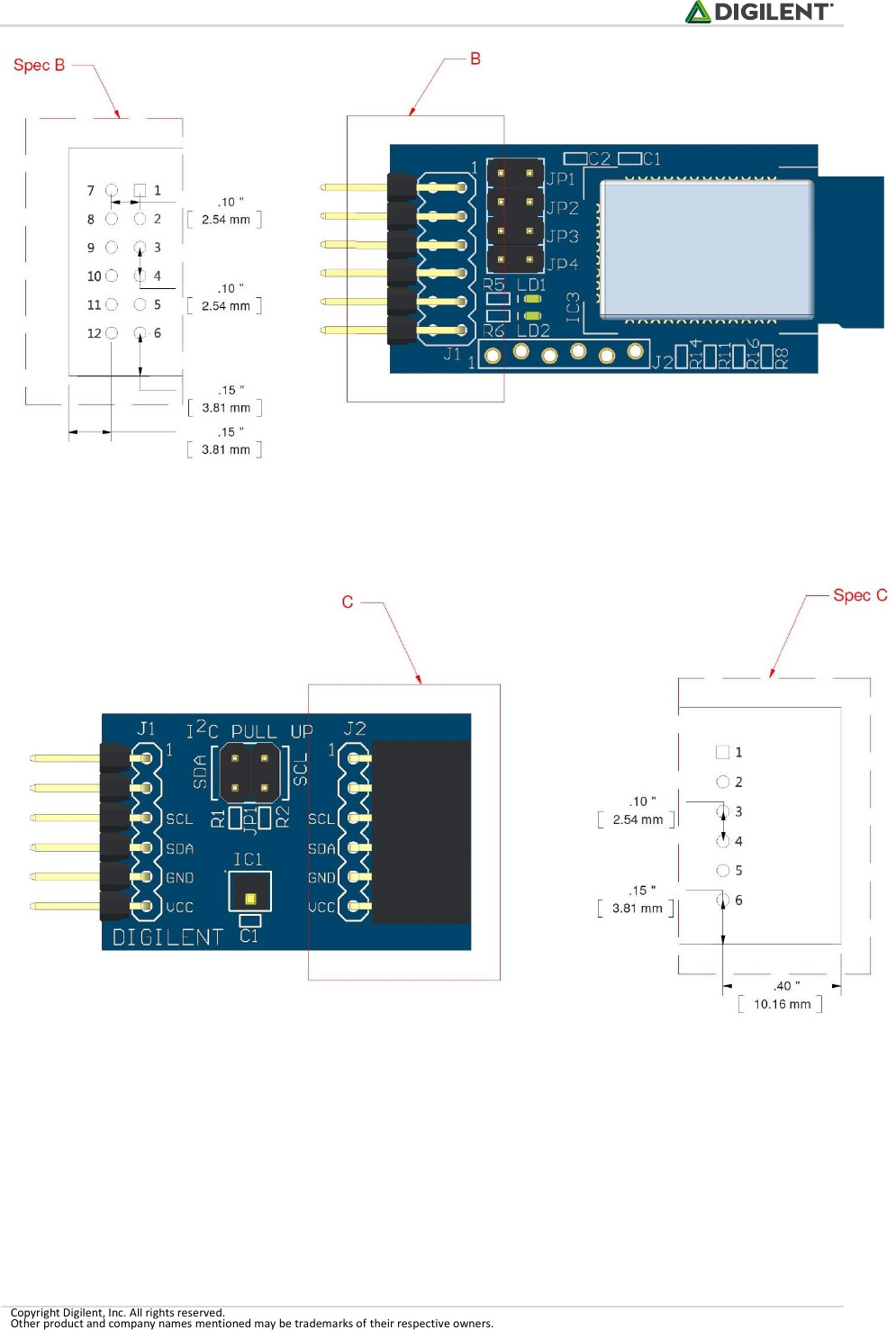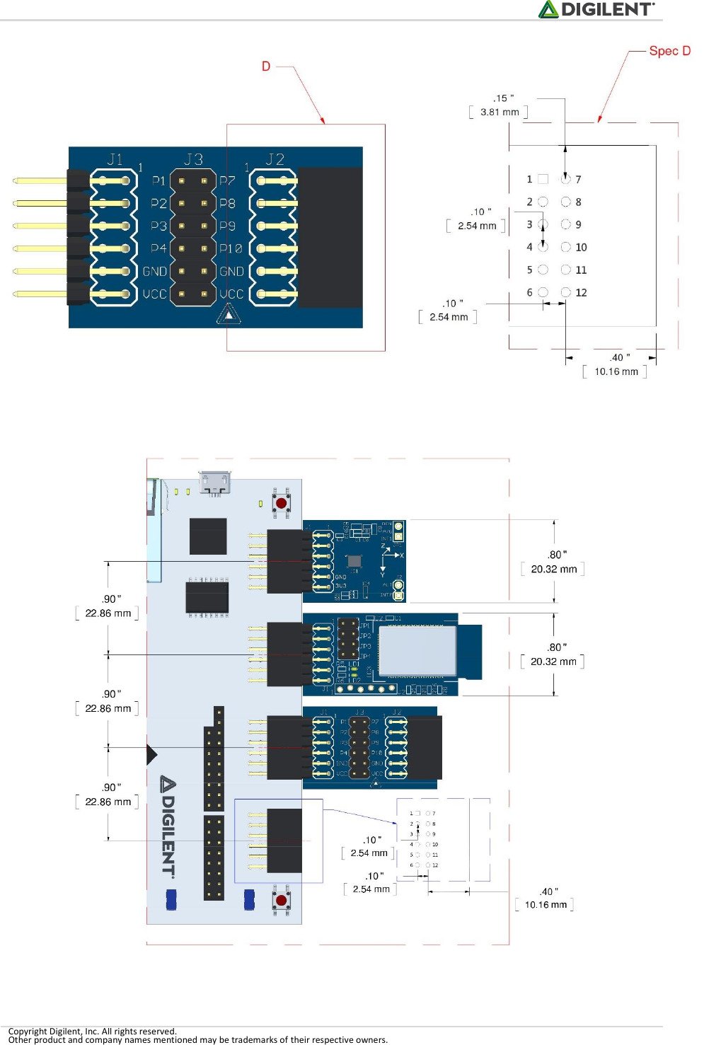 the board edge as only cable connections were intended to be used. Beginning with Pmod Specification 1.1.0, all