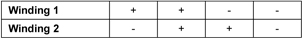 Rotation for a permanent magnet stepping motor with two windings and three pairs of permanent rotor poles (six poles) is shown in Figure 5.