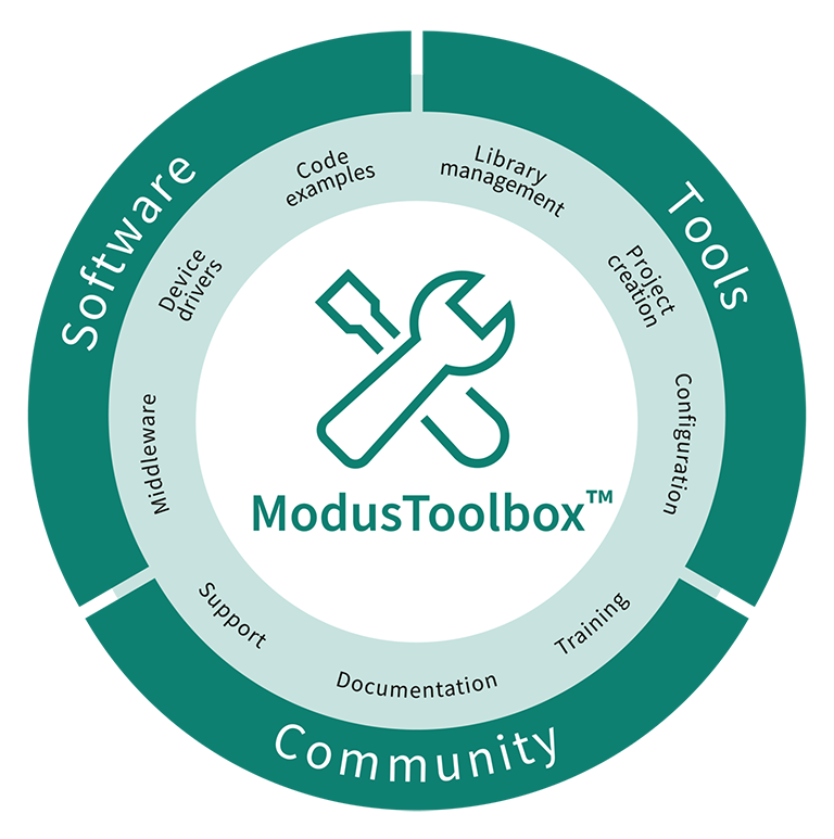AIROC™ Bluetooth® LE搭載PSoC™ 63 MCU(2.4GHz無線内蔵)は、業界の先端を行く150MHzのArm® Cortex®-M4コアと100MHzのCortex®-M0+コアのデュアルコアアーキテクチャをベースとしており、Bluetooth® LEプロトコルおよび無線機能と並行して複雑なアプリケーションを実行できるため、ホームオートメーション、ワイヤレスセンサ、IoTデバイス、電動工具、機械学習、ウェアラブル、ゲームコントローラ、コネクテッド医療機器など、幅広い民生用および産業用アプリケーションに最適です。PSoC™ 6-BLEは、Bluetooth® Low Energy 5.0システム、最新世代のCAPSENSE™テクノロジー、および多数のセキュリティ機能を統合したシステムオンチップです。PSoC™ 6-BLEは、MCUとBluetooth® LE無線の組み合わせに代わる、コスト効率が高く実装面積の小さい選択肢を提供します。プログラム可能なアナログサブシステムとデジタルサブシステムにより、設計の柔軟性とダイナミックな微調整が可能になります。