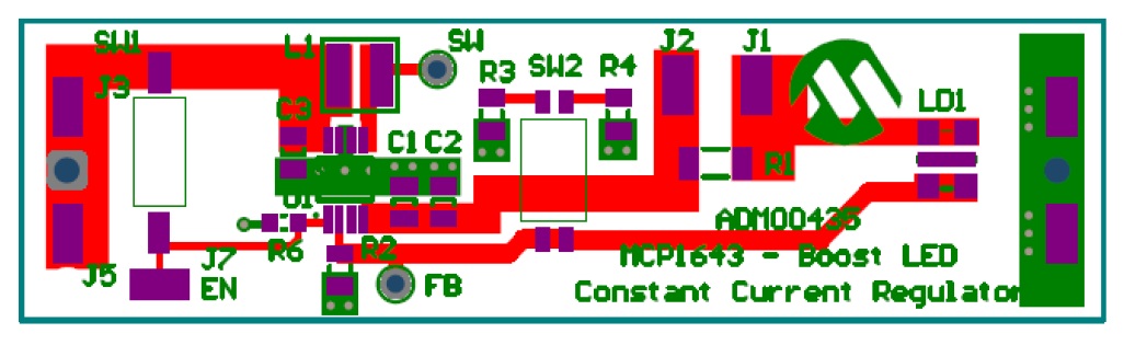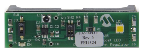 The MCP1643 Synchronous Boost LED Constant Current Regulator Evaluation Board is used to evaluate and demonstrate Microchip Technology’s MCP1643 device. This board demonstrates the MCP1643 in a boost converter application supplied by one AA battery, or from an external voltage source, which drives an LED with four selectable currents. The MCP1643 Synchronous Boost LED Constant Current Regulator Evaluation Board was developed to help engineers reduce the product design cycle time.